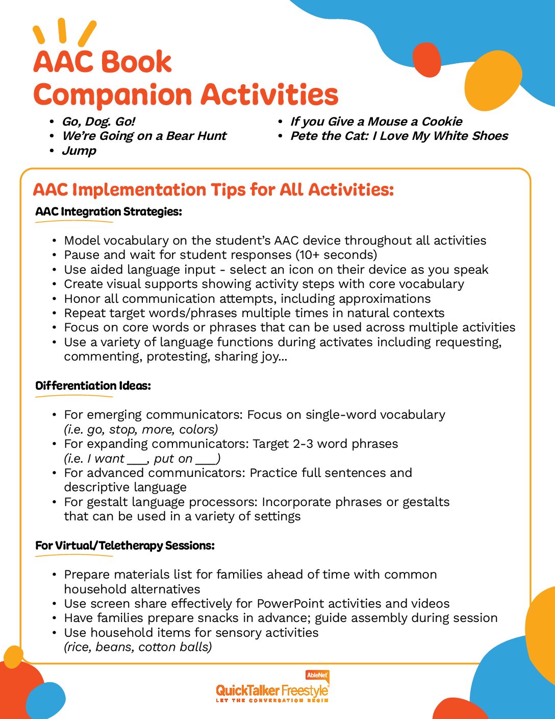 Our AAC Book Companion bundle is packed with engaging activities, snack ideas, crafts, and sensory play for 5 different books—all designed to support core vocabulary and communication growth.